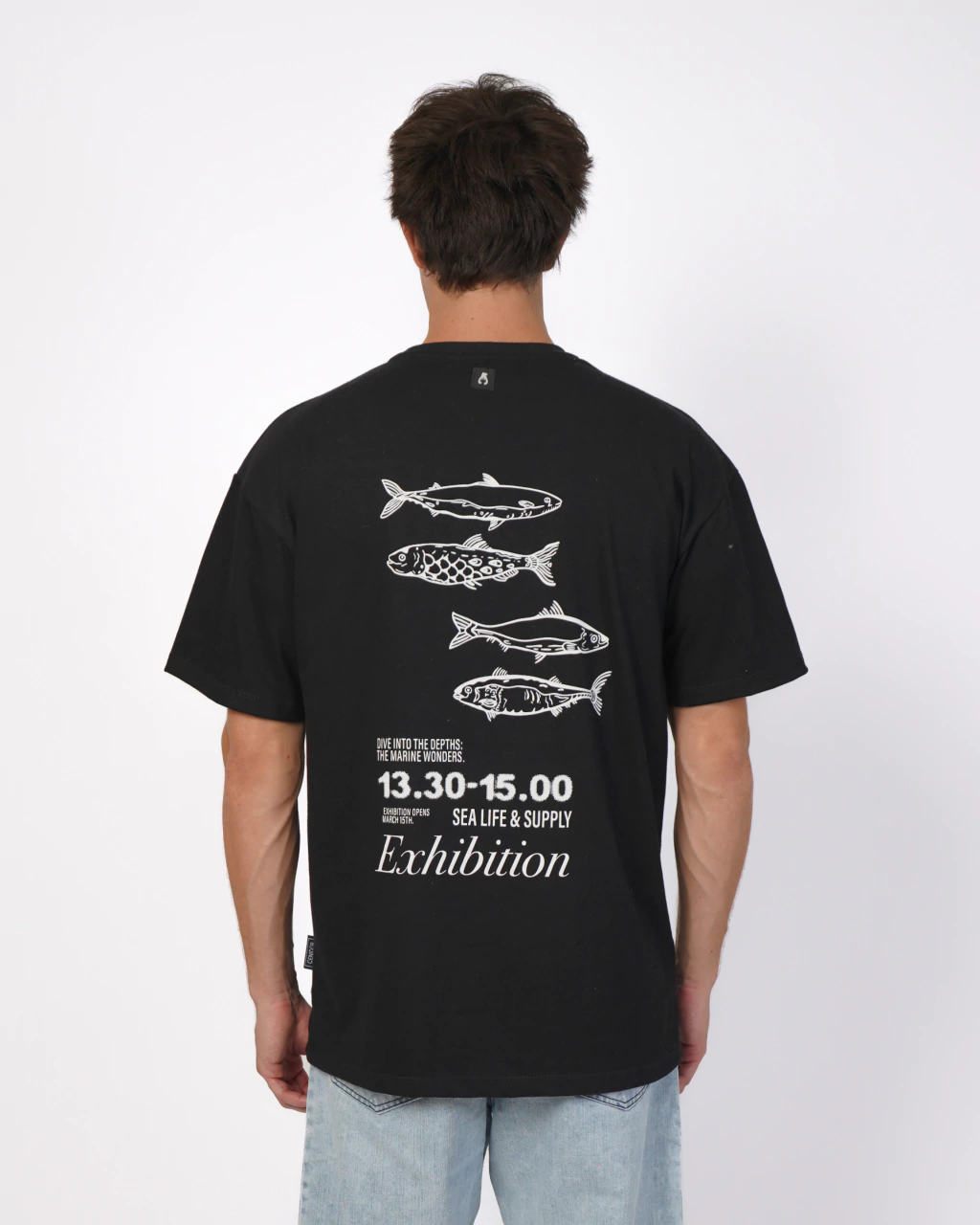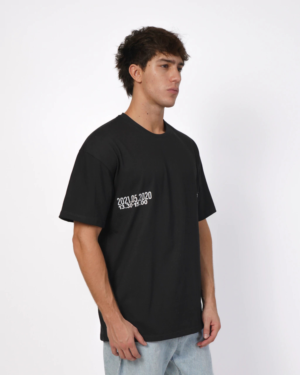 Remera negra estampada de corte oversize hecha con tela Jersey 24/1, 100% algodón.